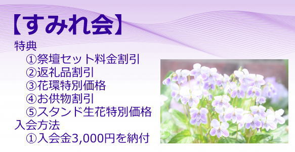 | ご自宅・葬祭ホール・仏式はもちろん、神葬祭にキリスト教式等、様々な形態宗派にも対応致しますので、ご安心しておまかせ下さい。 | 旅立たれる方への手向けに、美しい花でお送り致します。ご遺族様の気持ちに心を重ねて真心こめてお作り致します。 |